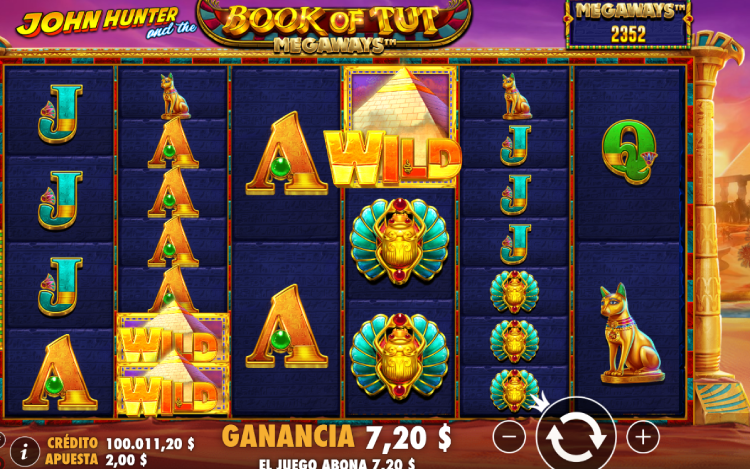 Book of Tut Megaways, desarrollada por Pragmatic Play, es una slot de lo más tradicional con un ritmo dinámico y funciones especiales que hacen que las partidas sean siempre entretenidas con diferentes posibilidades de llevarse premios.El escenario elegido es el Egipto ancestral, donde habrá que buscar los tesoros ocultos, jeroglíficos, o incluso al joven Tutankamón. El tablero está situado en medio del desierto, dándole ese toque adicional de realismo a la partida.